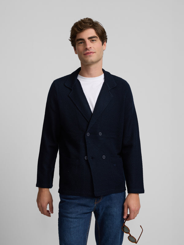 Navy blue double-breasted stretch jacket