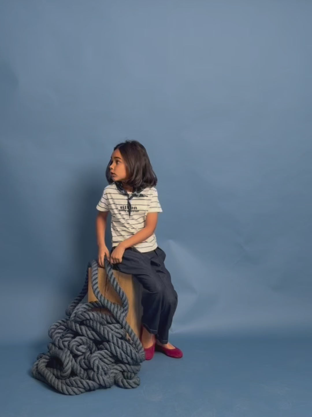 Short-sleeved T-shirt made from 100% cotton, with a regular fit. It features a nautical striped print and a round neckline with a bandana detail. The front graphic reads "Silbon mon amor". Made in Portugal.