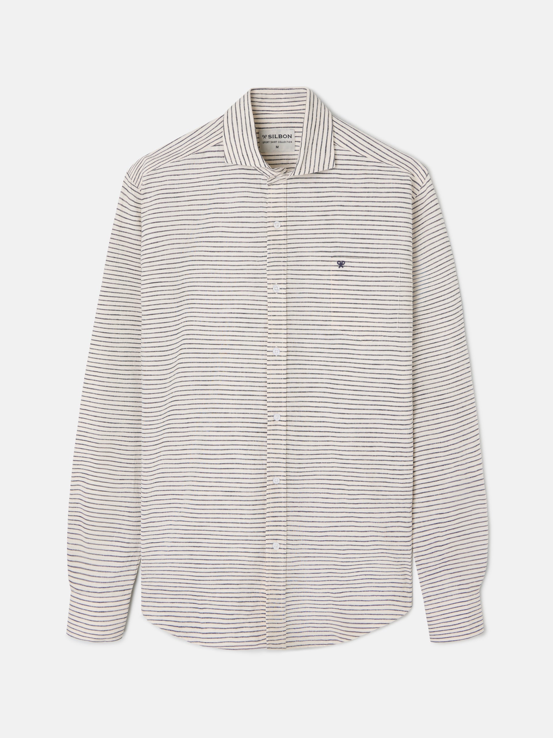 Navy blue horizontal stripe pocket sport shirt