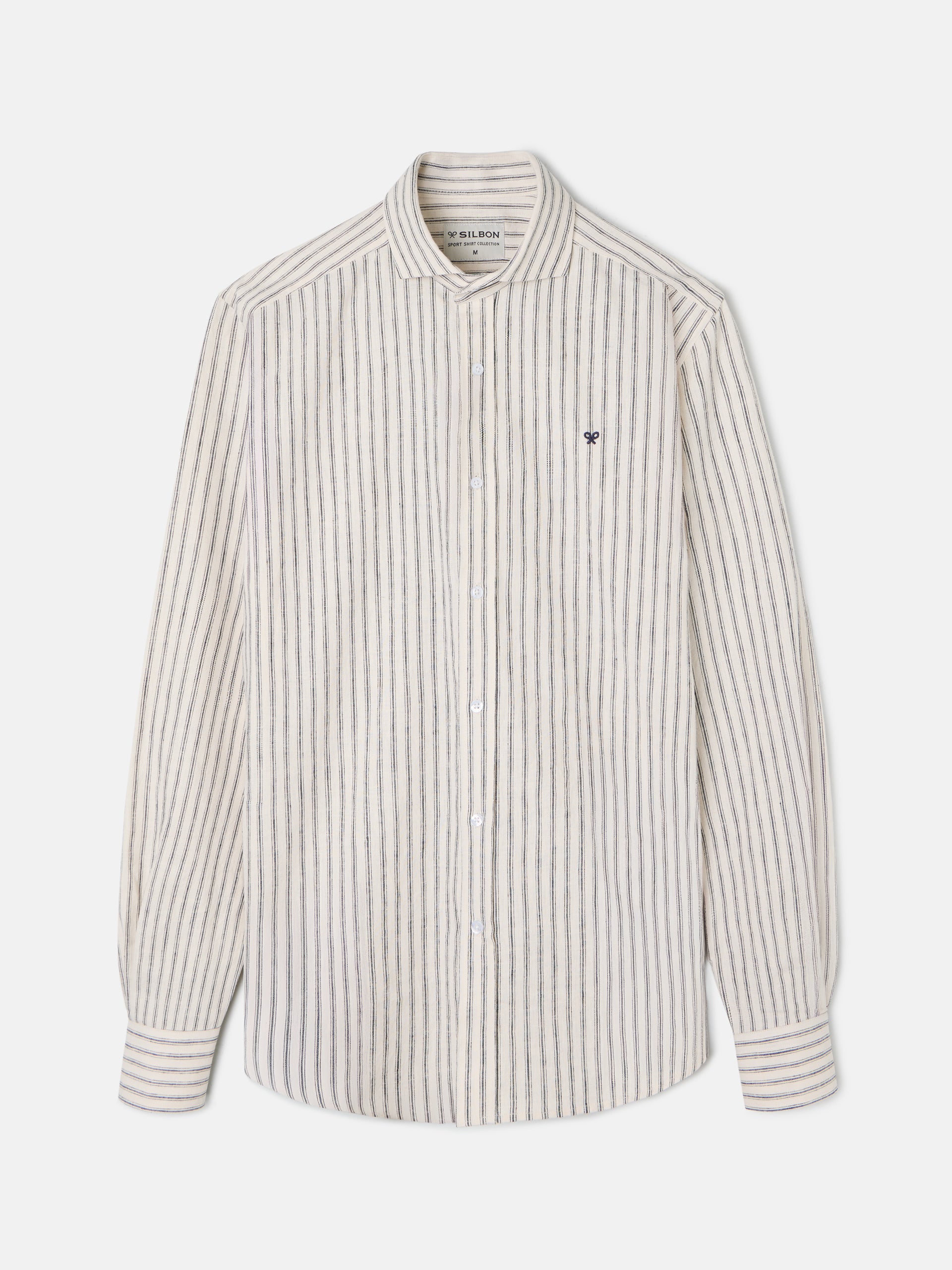 Beige vertical striped mini logo sport shirt