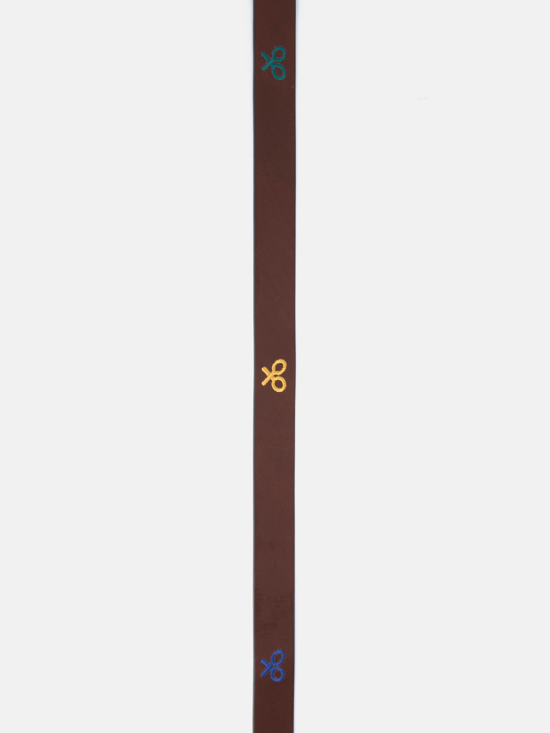 Kids belt made of 100% leather. It features embroidery of colored rackets and an aged gold buckle. It has a fire-etched racket on the end and a personalized buckle with Silbon letters. Made in Spain.