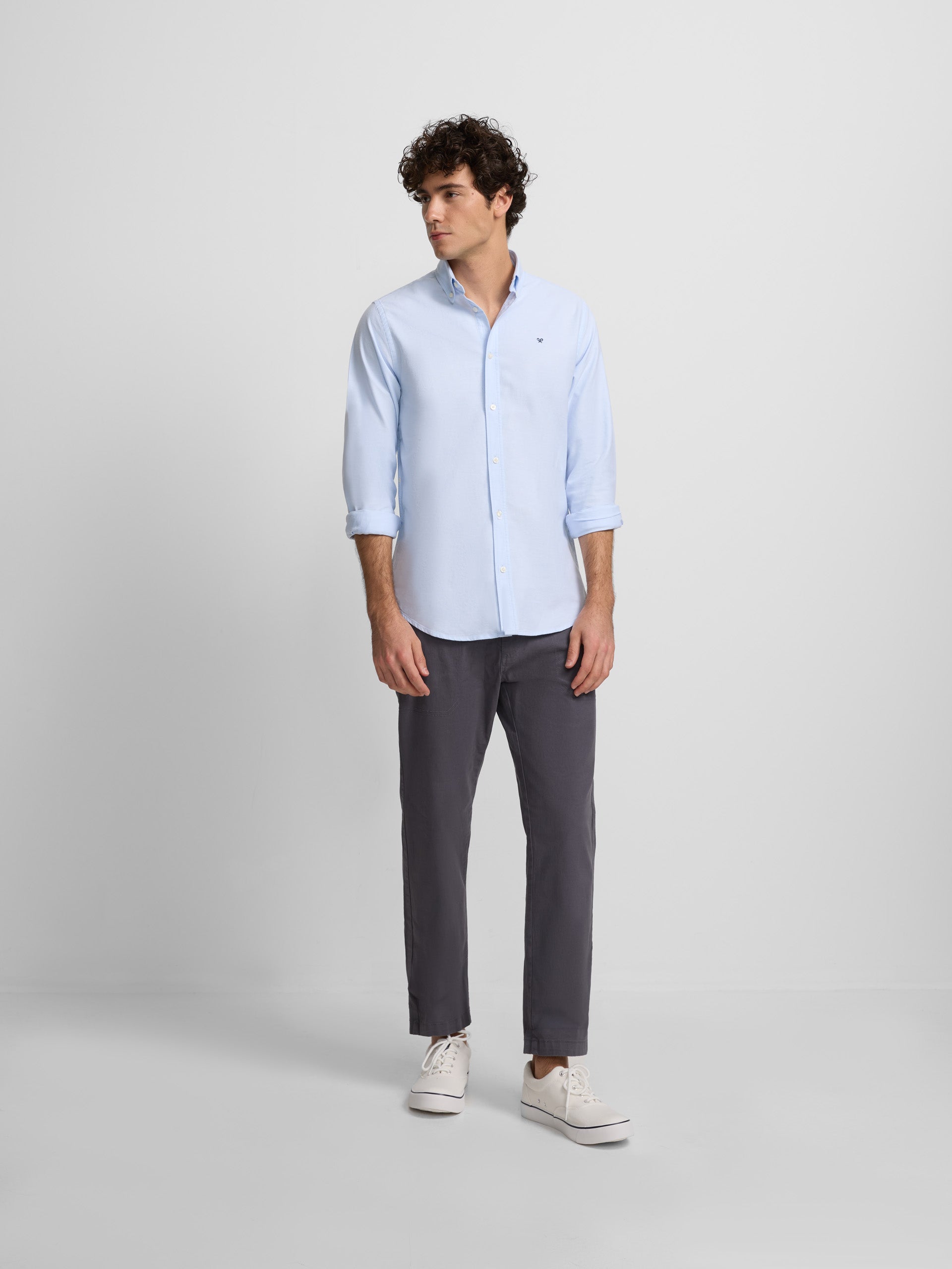Oxford shirt made of 100% BCI cotton with a Regular fit. It features a button-down collar, personalized button closure and long sleeves with buttoned cuffs. It has embroidered ra .
