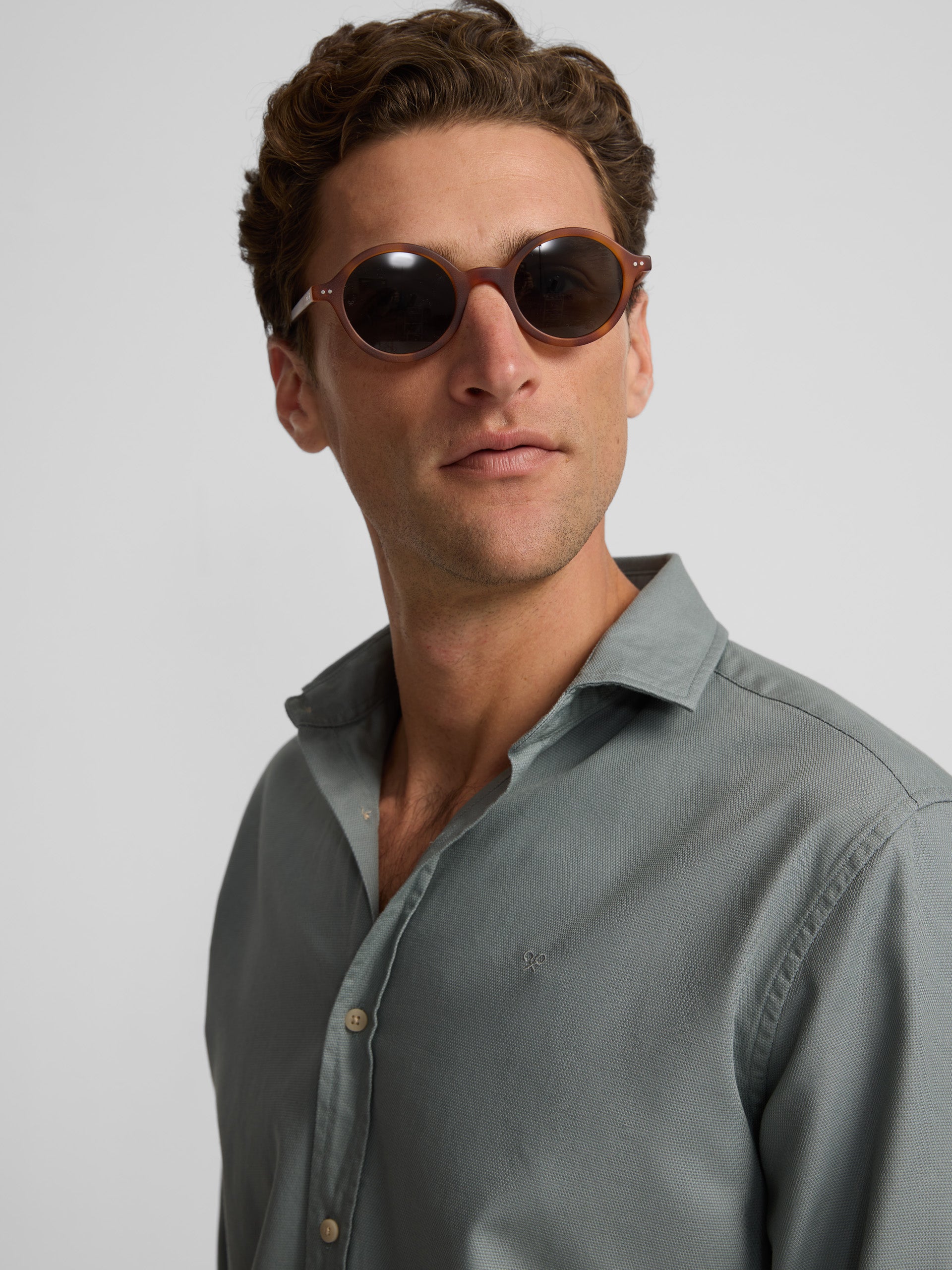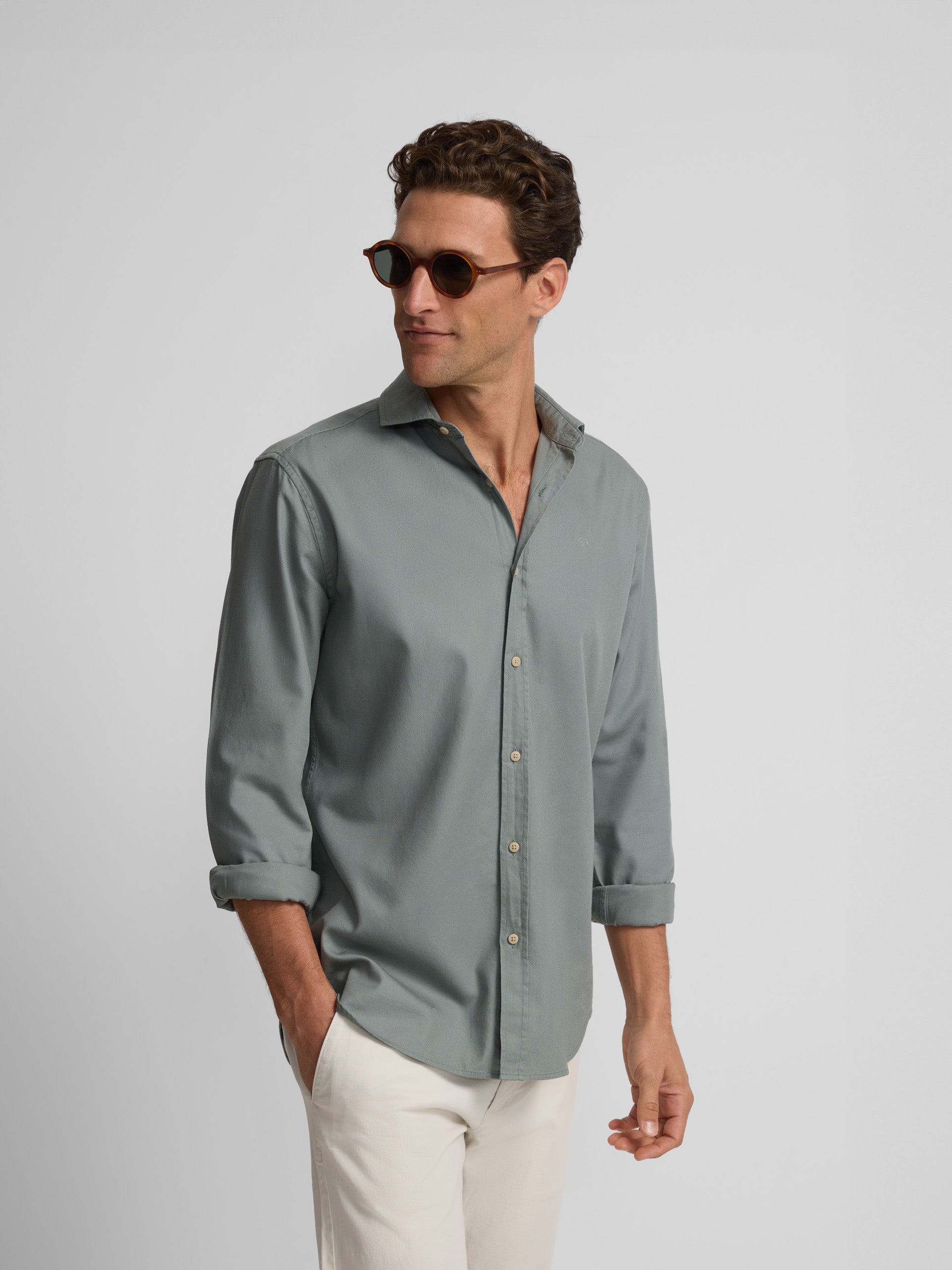 Slim fit mini-structure shirt made of 100% cotton. It features a classic collar, closure with personalized buttons and long sleeves with button cuffs. It has racquets embroidered on the torso.