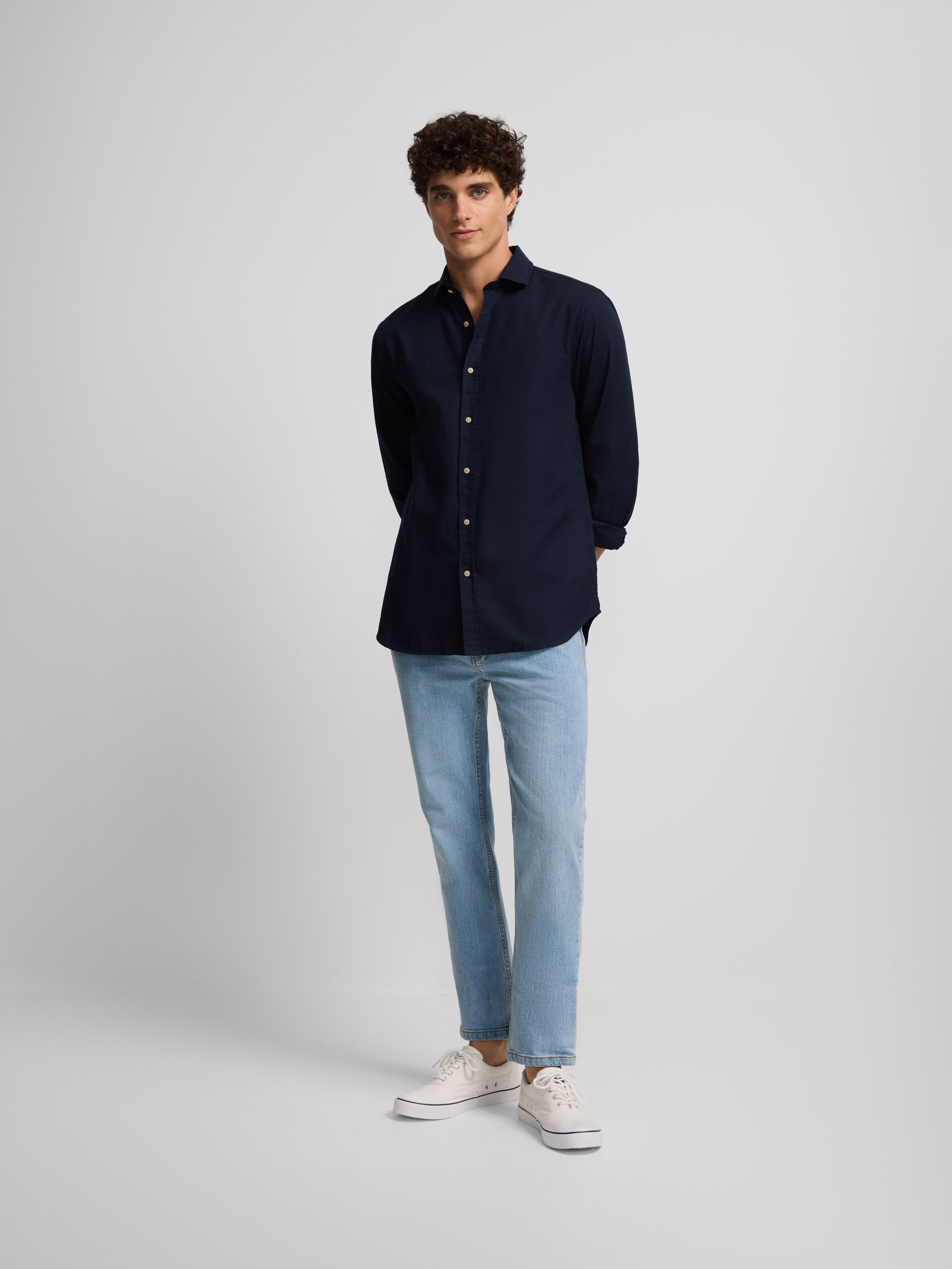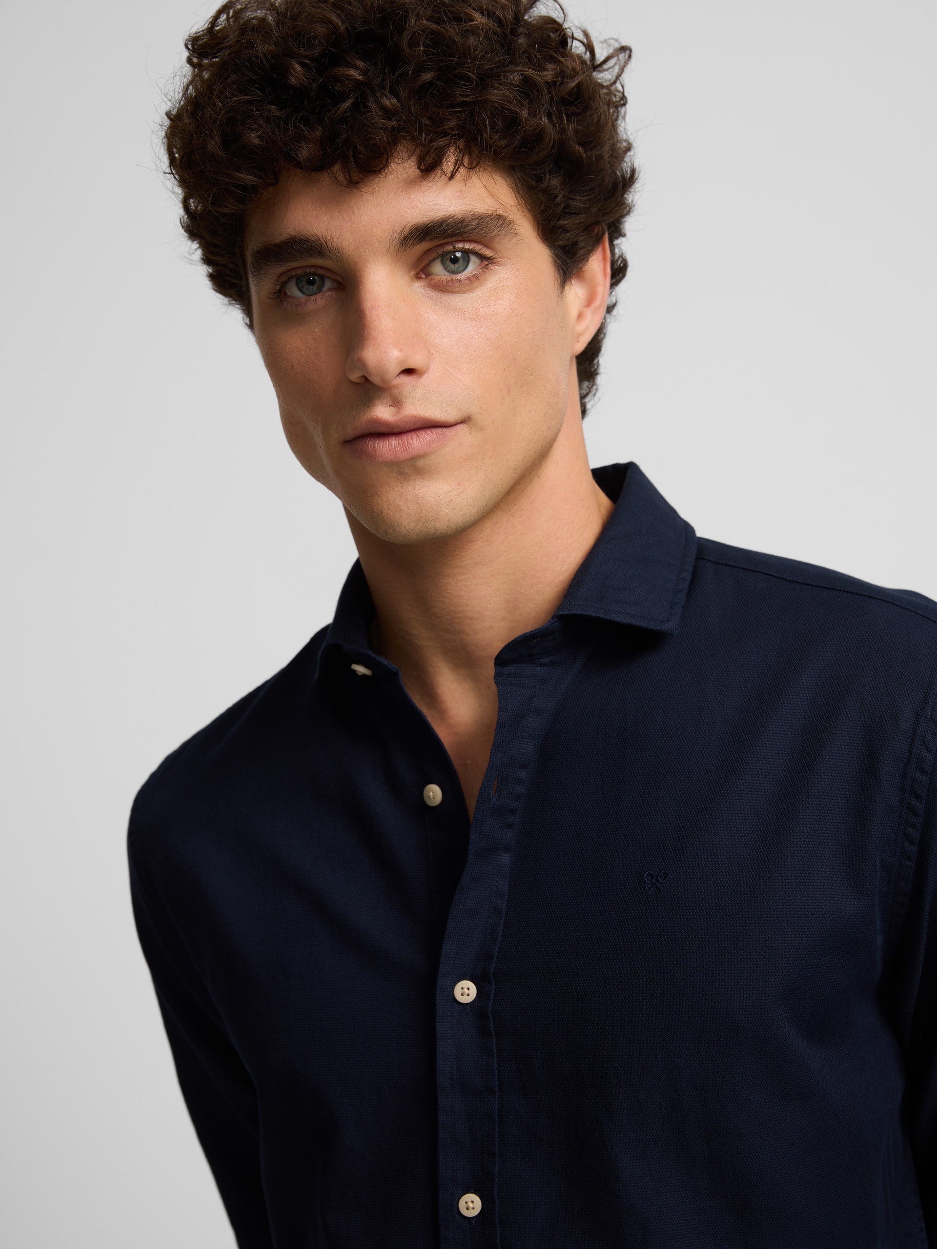 Slim fit mini-structure shirt made of 100% cotton. It features a classic collar, closure with personalized buttons and long sleeves with button cuffs. It has racquets embroidered on the torso.