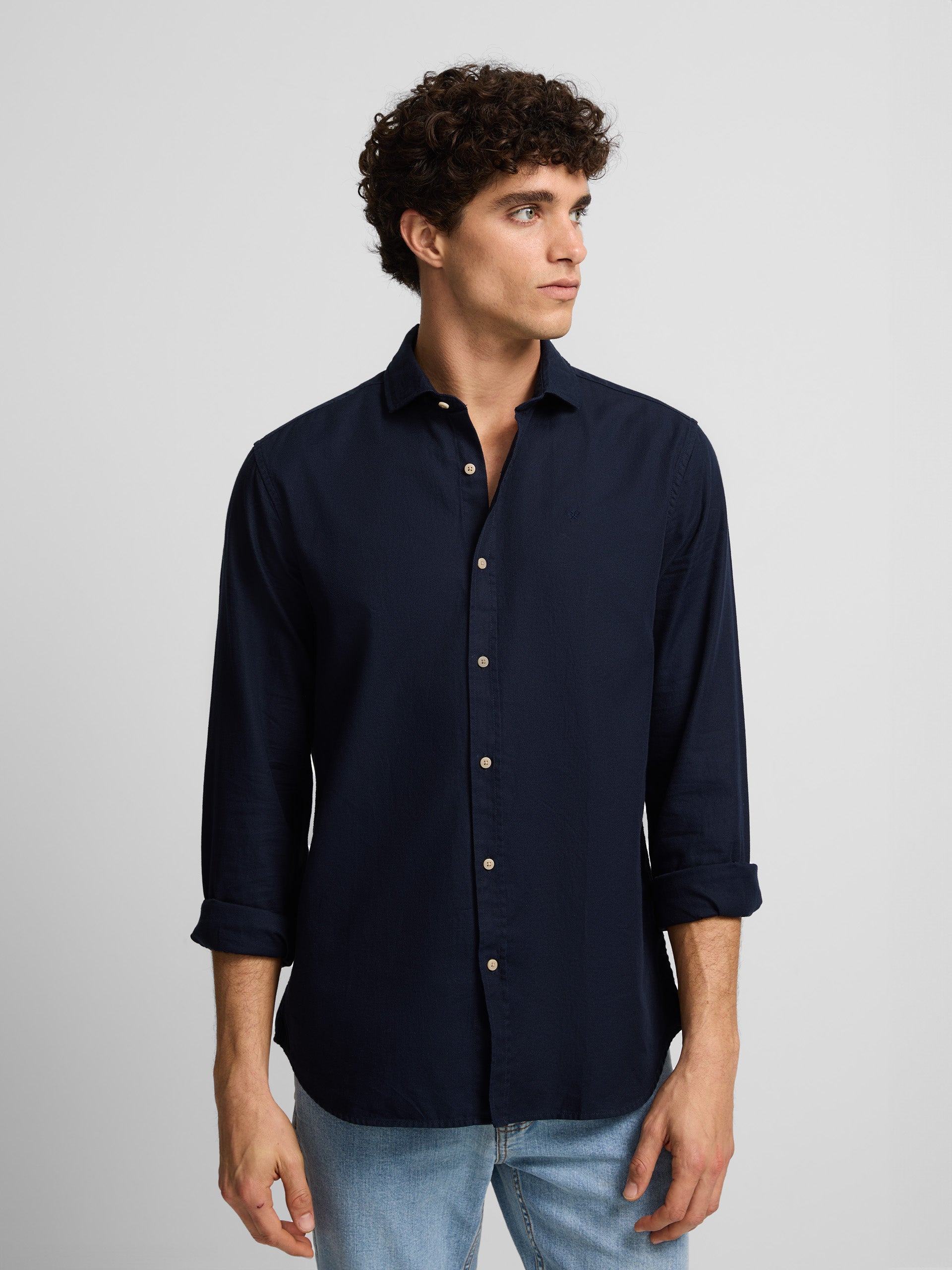 Navy blue mini-structure sport shirt