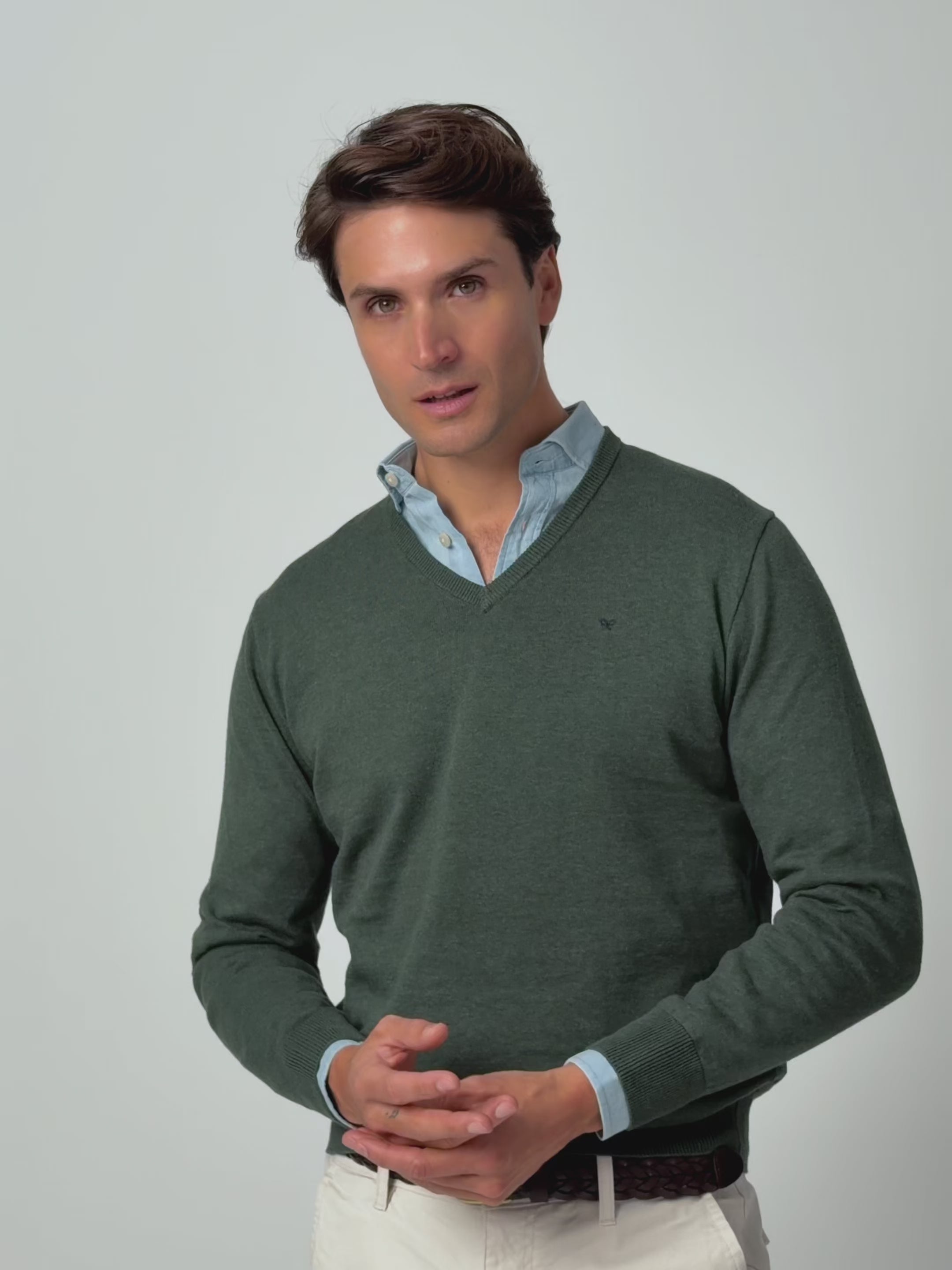 Jersey liso cuello pico verde oscuro