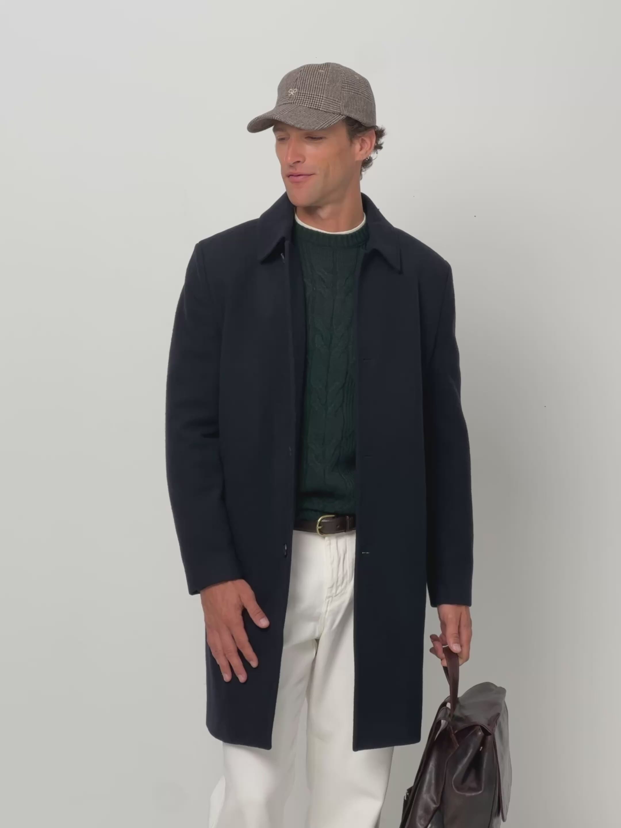 Este abrigo recto en color azul marino está confeccionado en una sofisticada mezcla de lana de alta calidad, pensada para ofrecer suavidad y durabilidad durante los meses más fríos del .