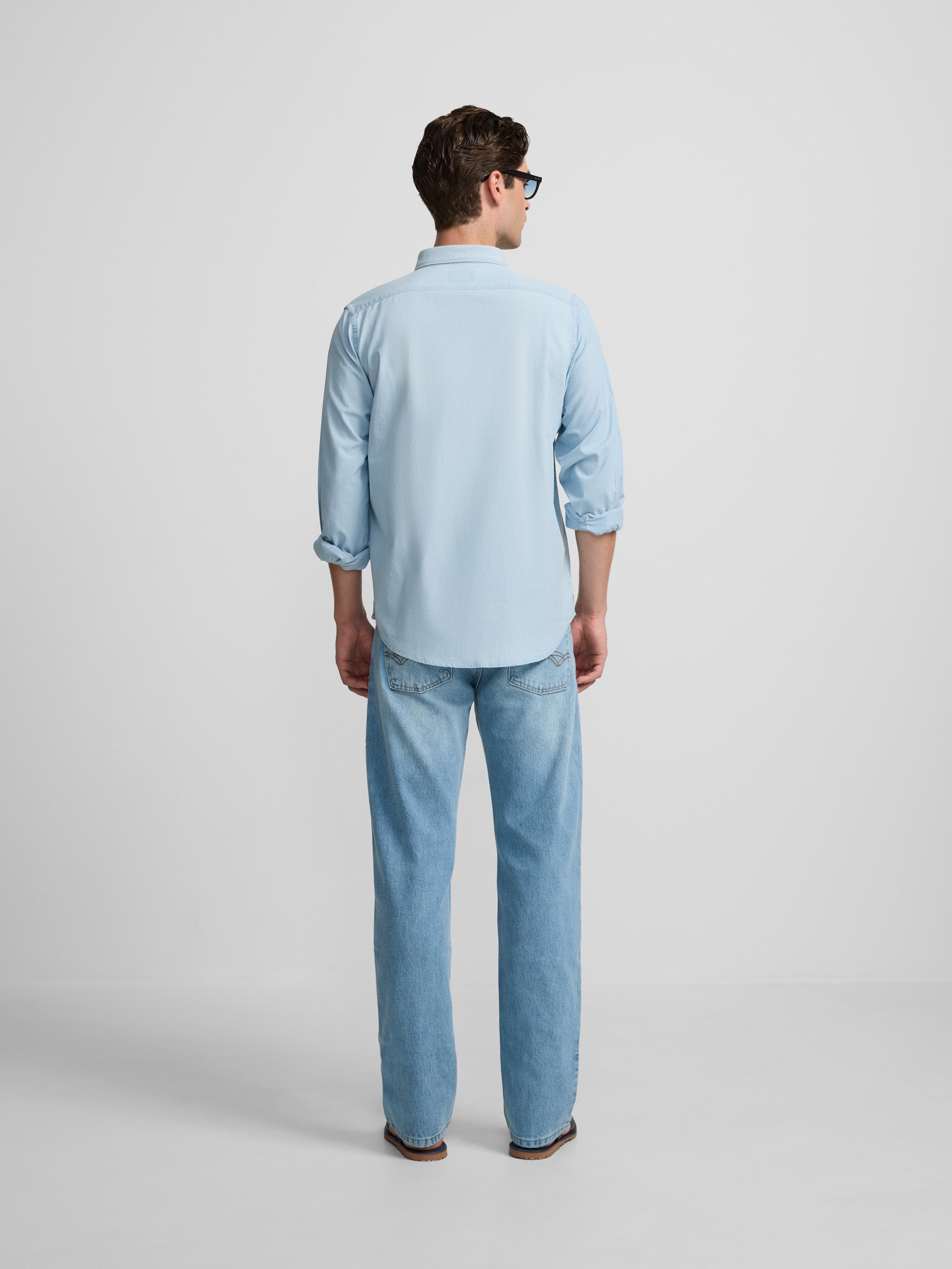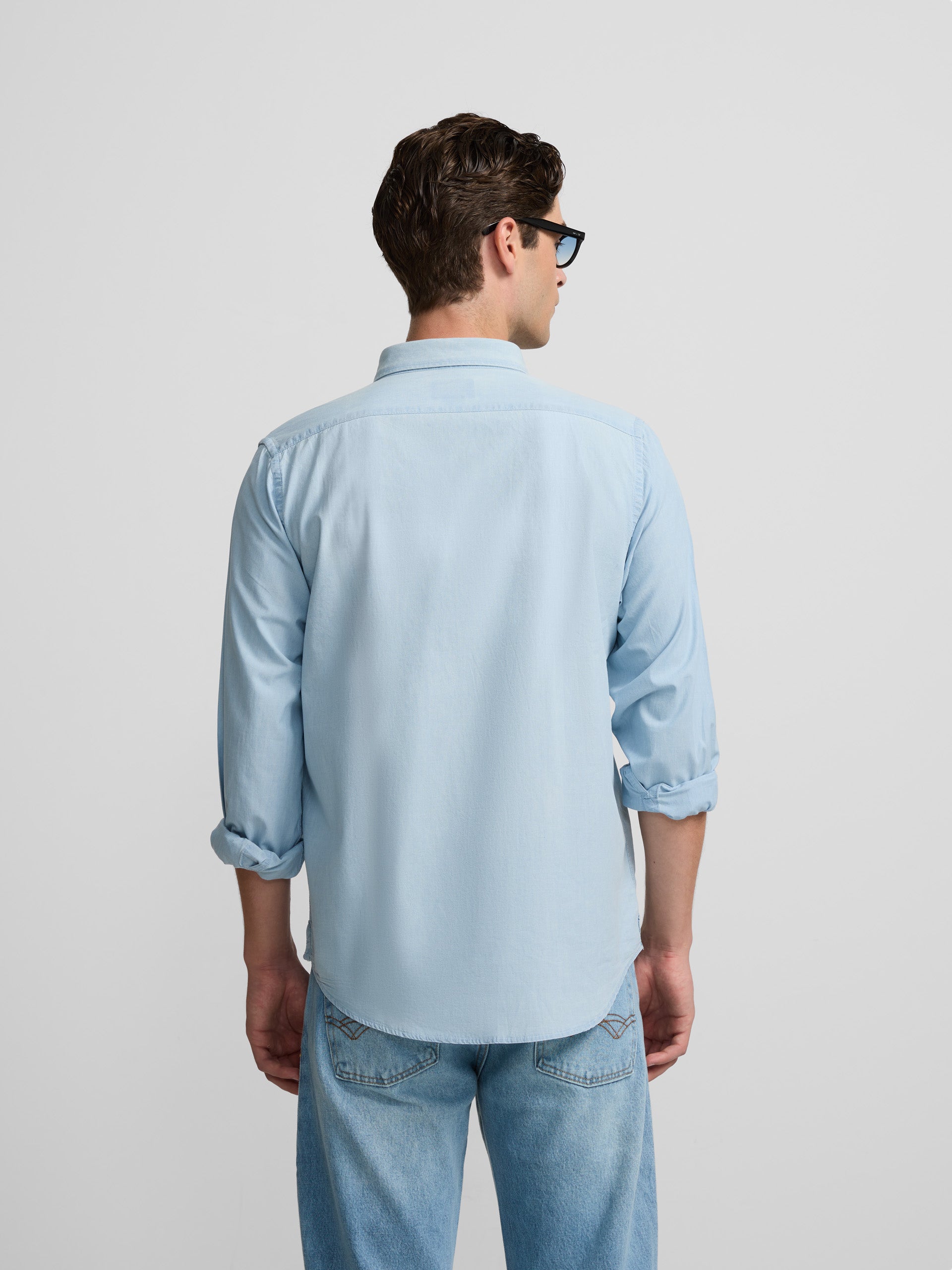 Camisa denim confeccionada en 100% algodón BCI de corte Regular fit. Presenta cuello button down, cierre con botones personalizados y manga larga de puño con botones. Cuenta con raquet .