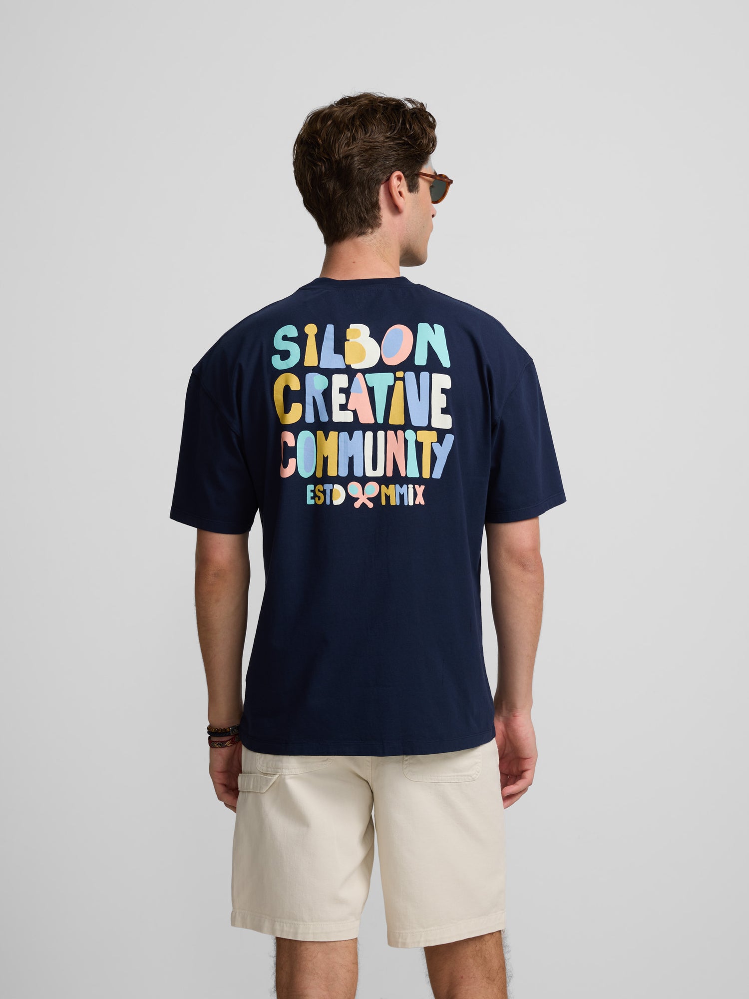 Sweat-shirt en tissu éponge bleu marine avec mini logo Silbon