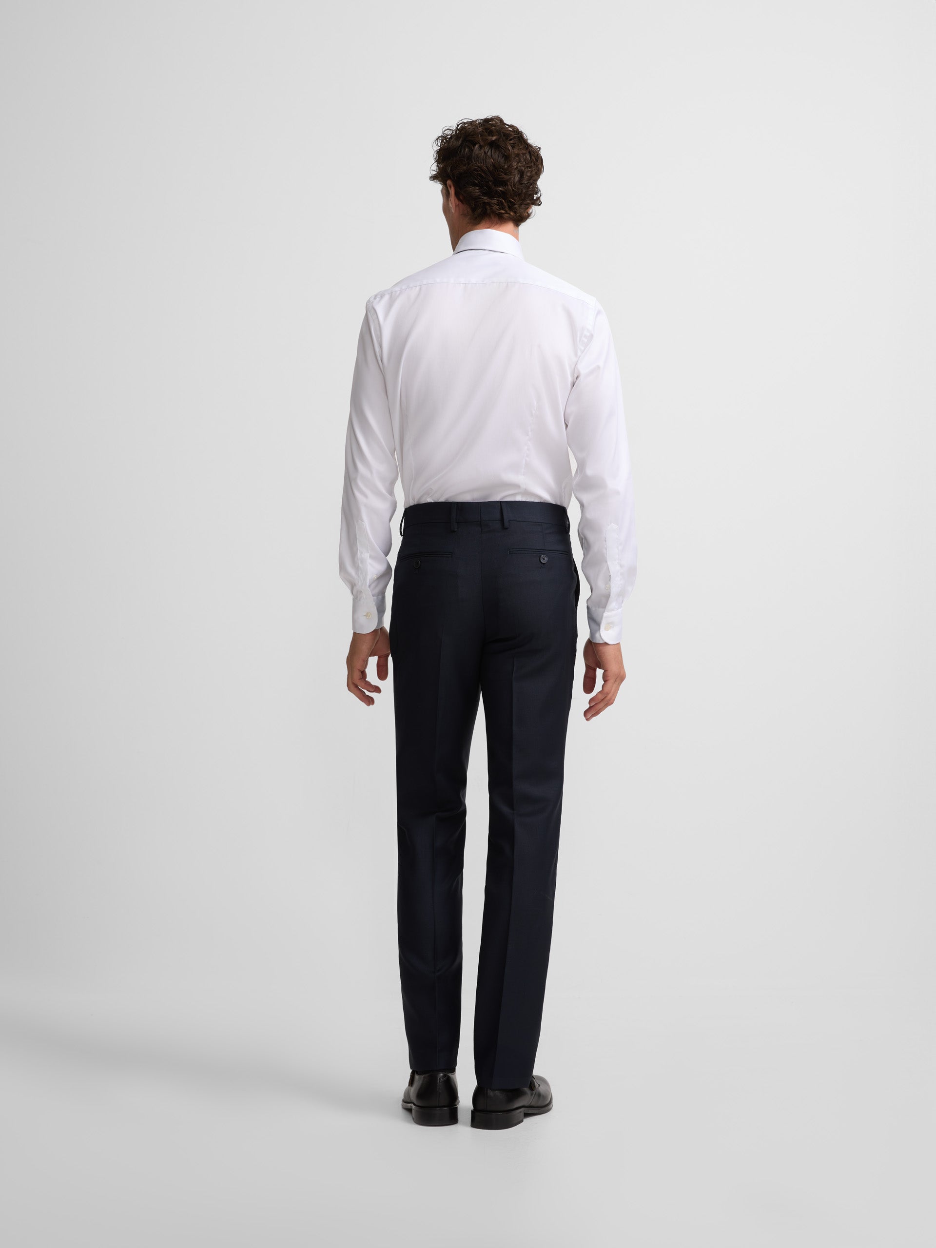Pantalon de costume structuré confectionné dans un mélange de laine, polyester et élasthanne pour apporter légèreté et confort. Il a une coupe classique avec une fermeture allongée avec un bouton et une fermeture éclair personnalisés, des poches latér