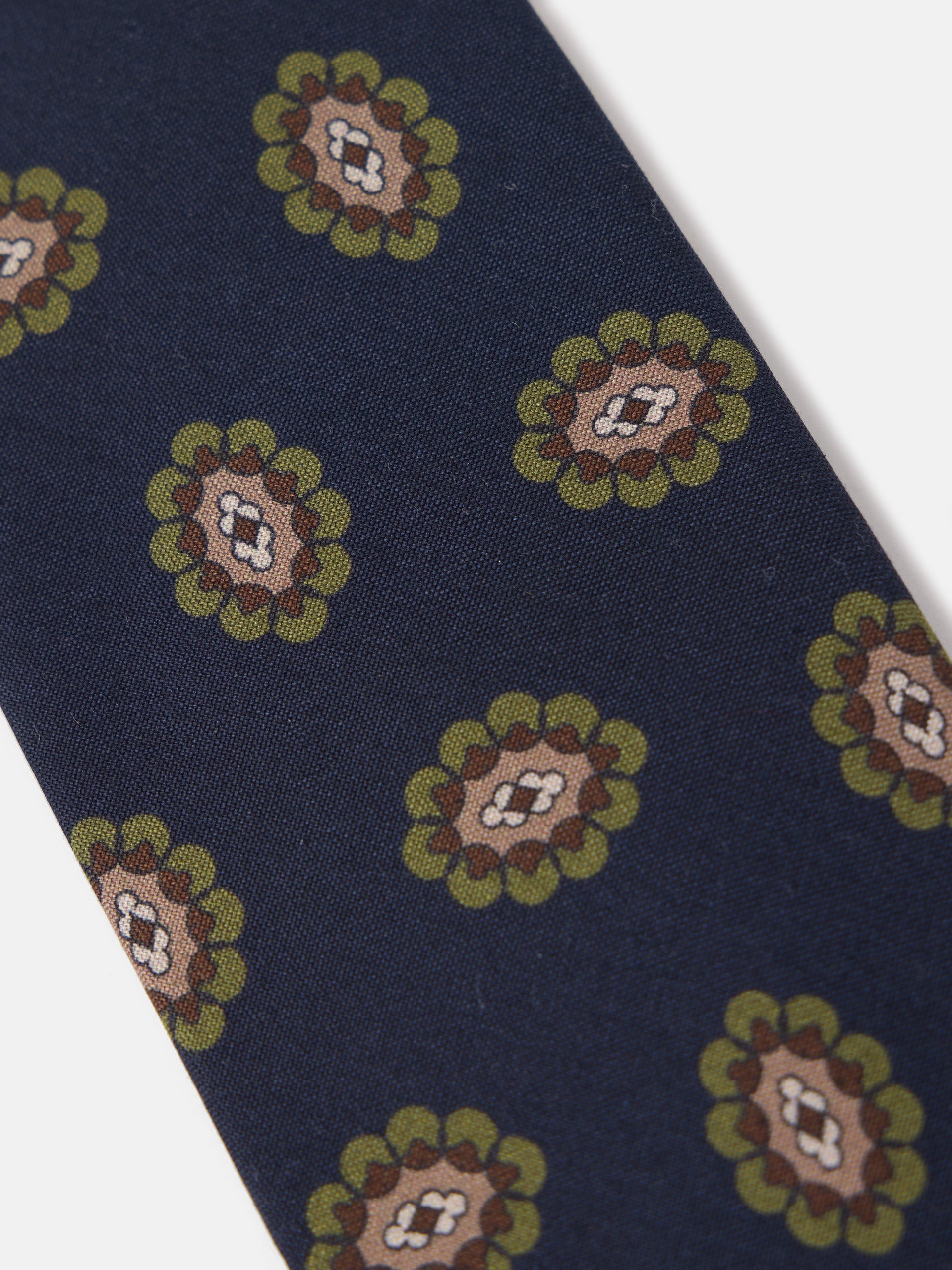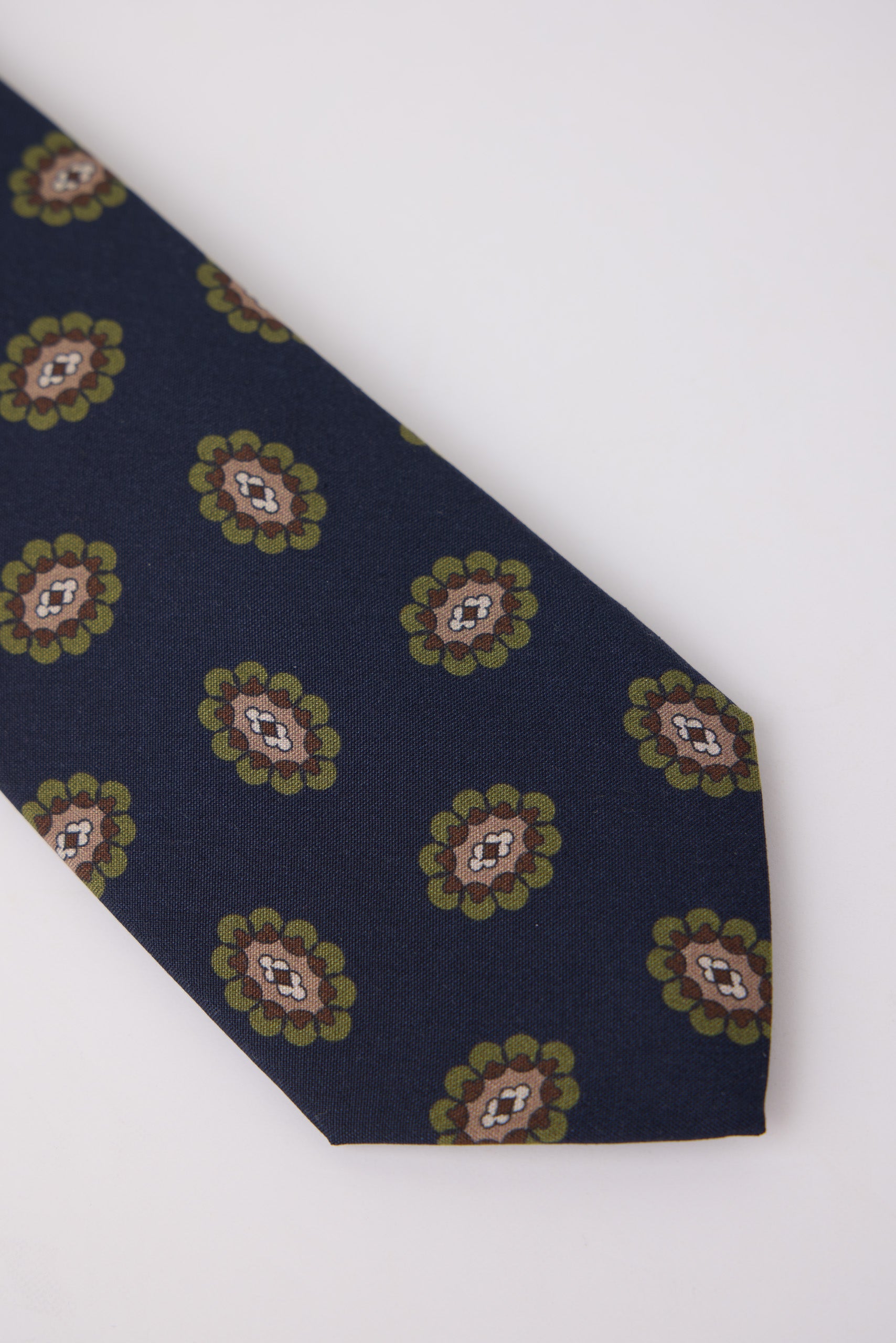 Cravate à motif médaillon en 100% soie. Comprend des détails imprimés et une doublure intérieure personnalisée. Il a une lame de 8 cm.