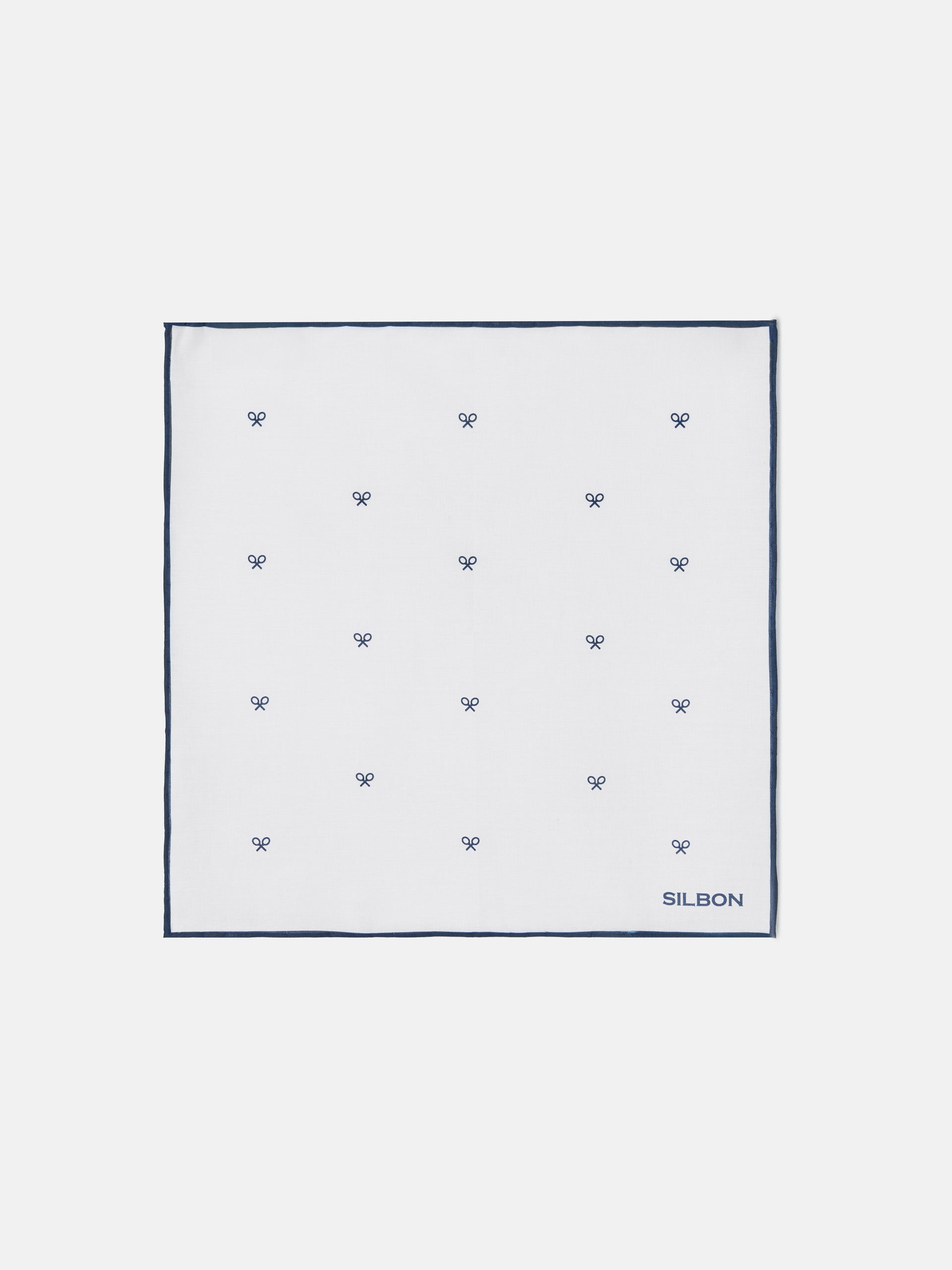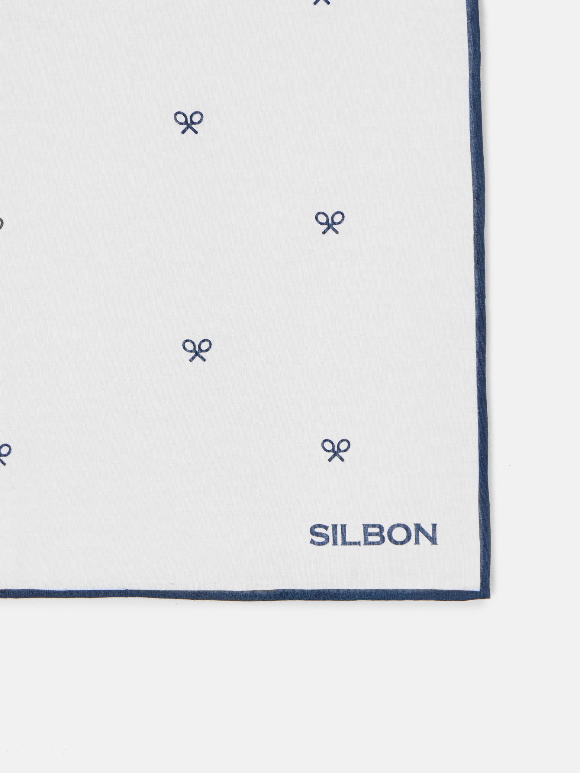 Mouchoir en 100% coton. Présente un imprimé jacquard multi-raquettes et un détail de lettrage Silbon.