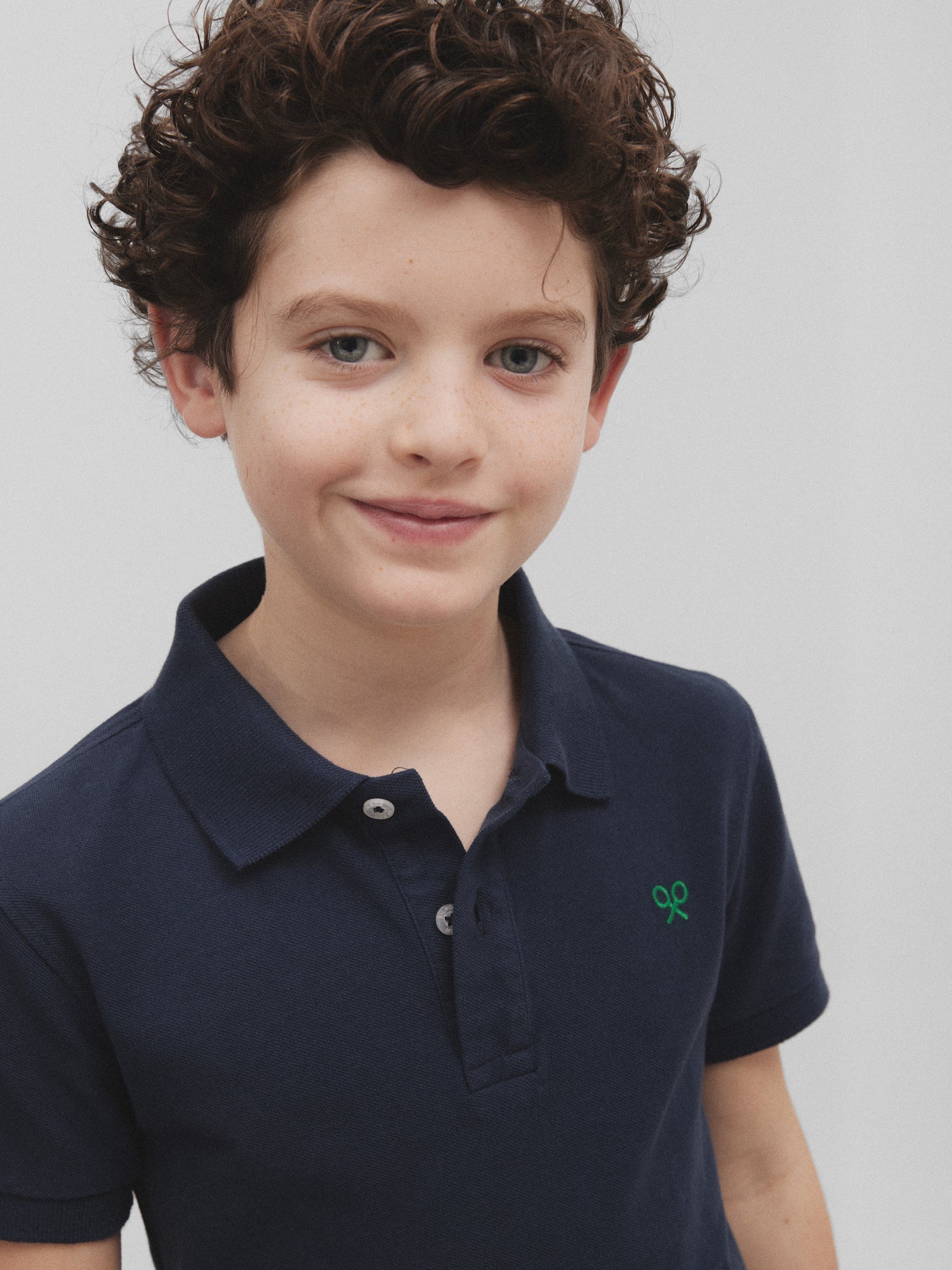 Sweat-shirt bleu marine à col polo et coupe décontractée