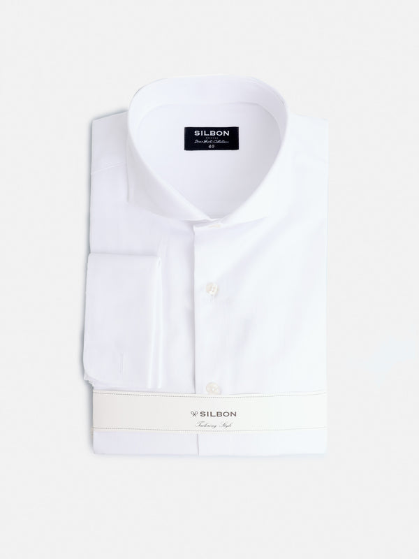 Chemise habillée blanche à double manchette facile à repasser