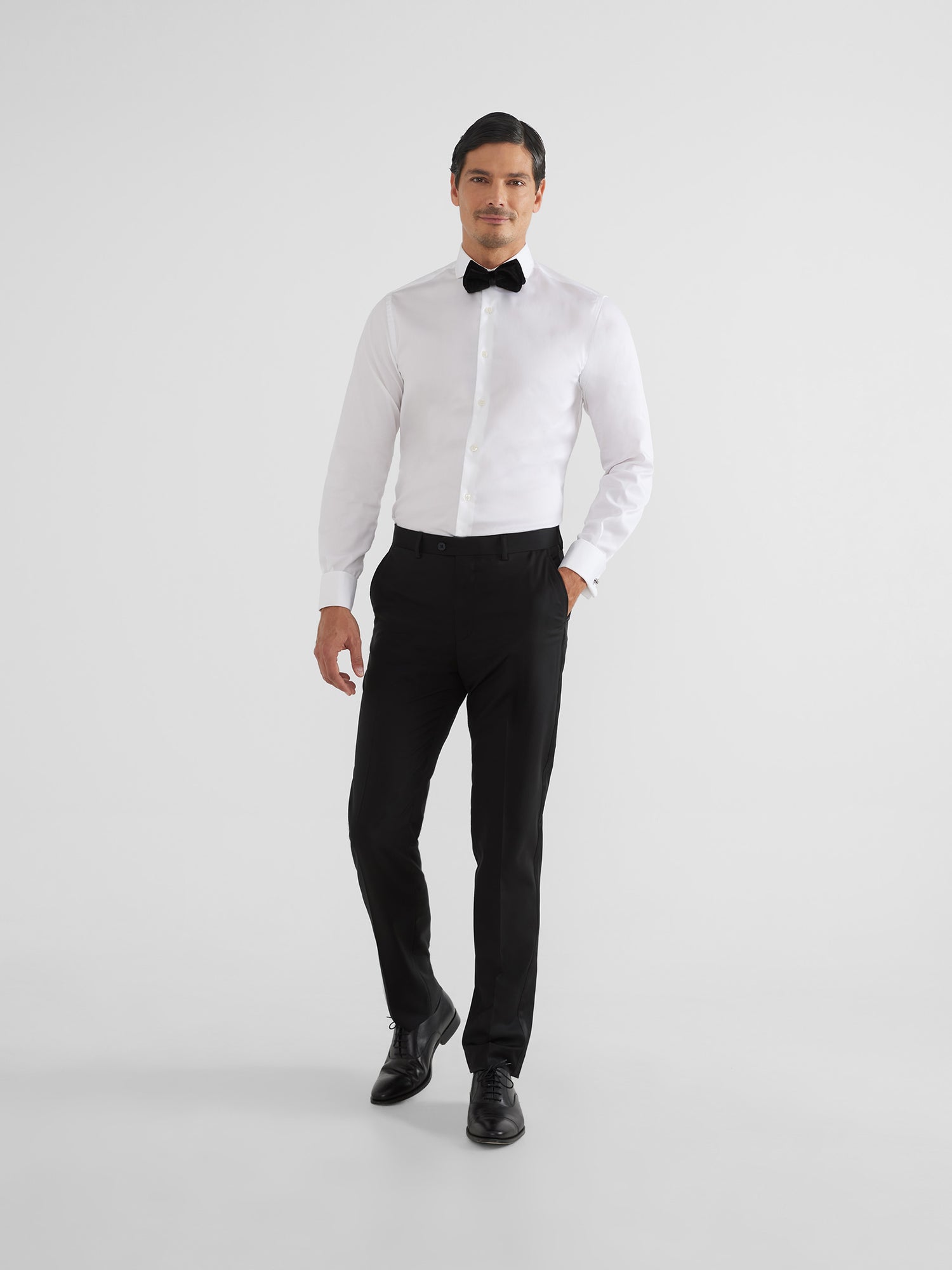 Veste de smoking 100% laine. Il présente une coupe slim avec une coupe droite, une fermeture boutonnée personnalisée, des poches passepoilées doubles et une poche poitrine insérée. Il .