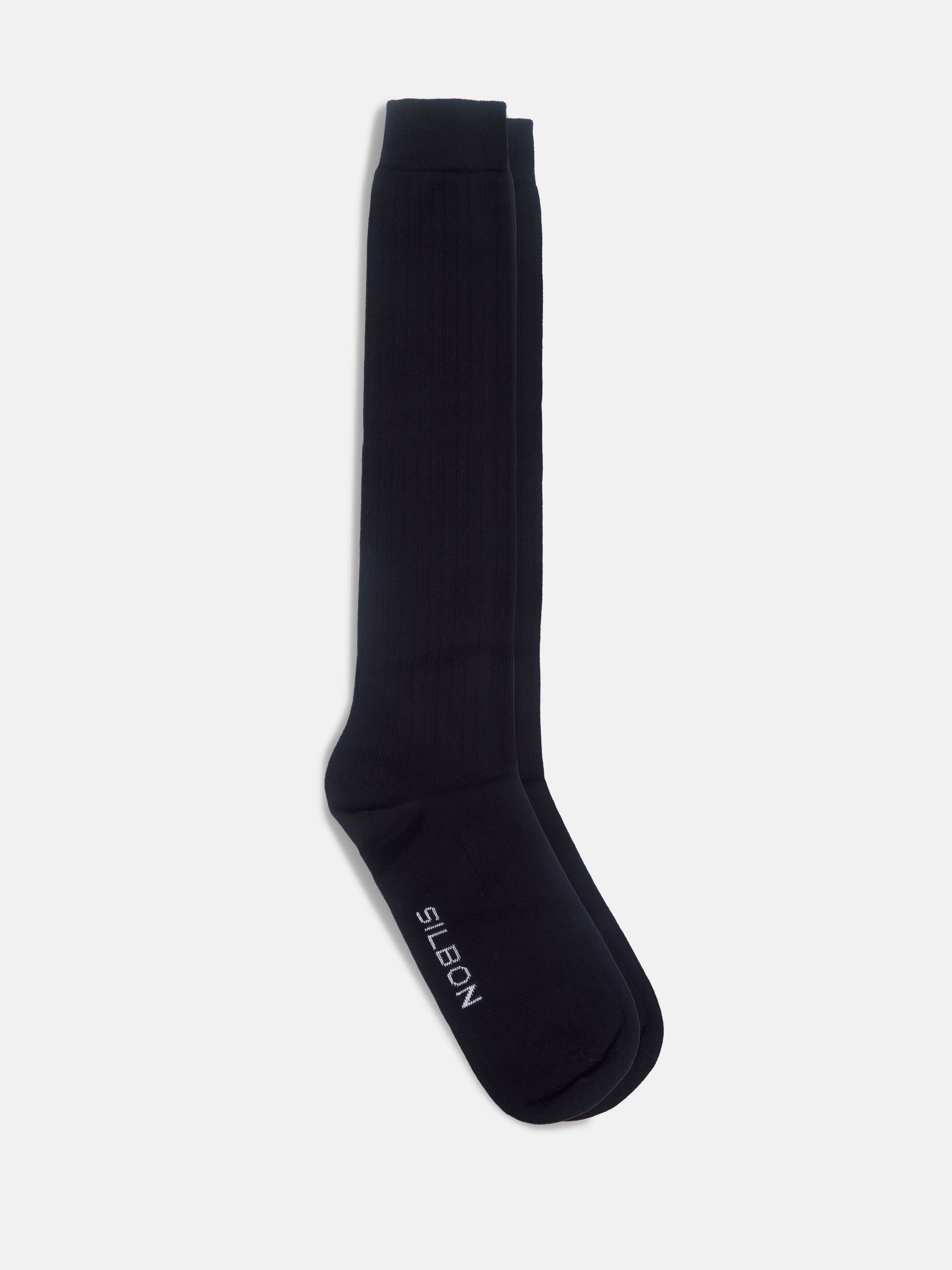Chaussette de couture noire en coton mélangé. La tige de la chaussette mesure 50 cm de haut. Fabriqué au Portugal.