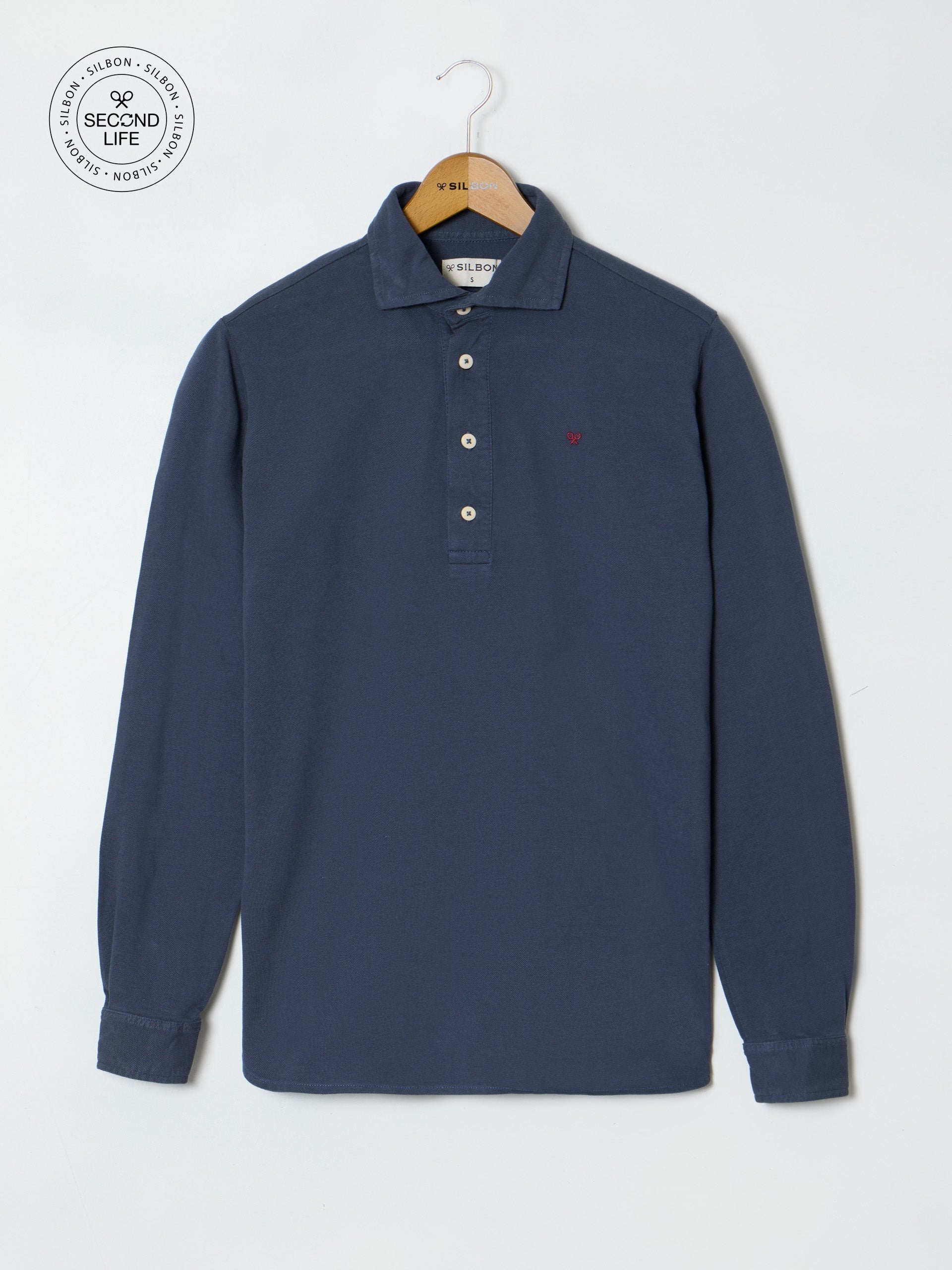 Polo clásico de manga larga confeccionado en 100% algodón de corte Regular fit. Presenta cuello clásico y cierre con botones personalizados. Cuenta con bordado de raquetas en el torso. Los artículos Silbon Second Life son prendas de segunda mano y pueden presentar signos de uso y desgaste. Aconsejamos lavar antes de usar.