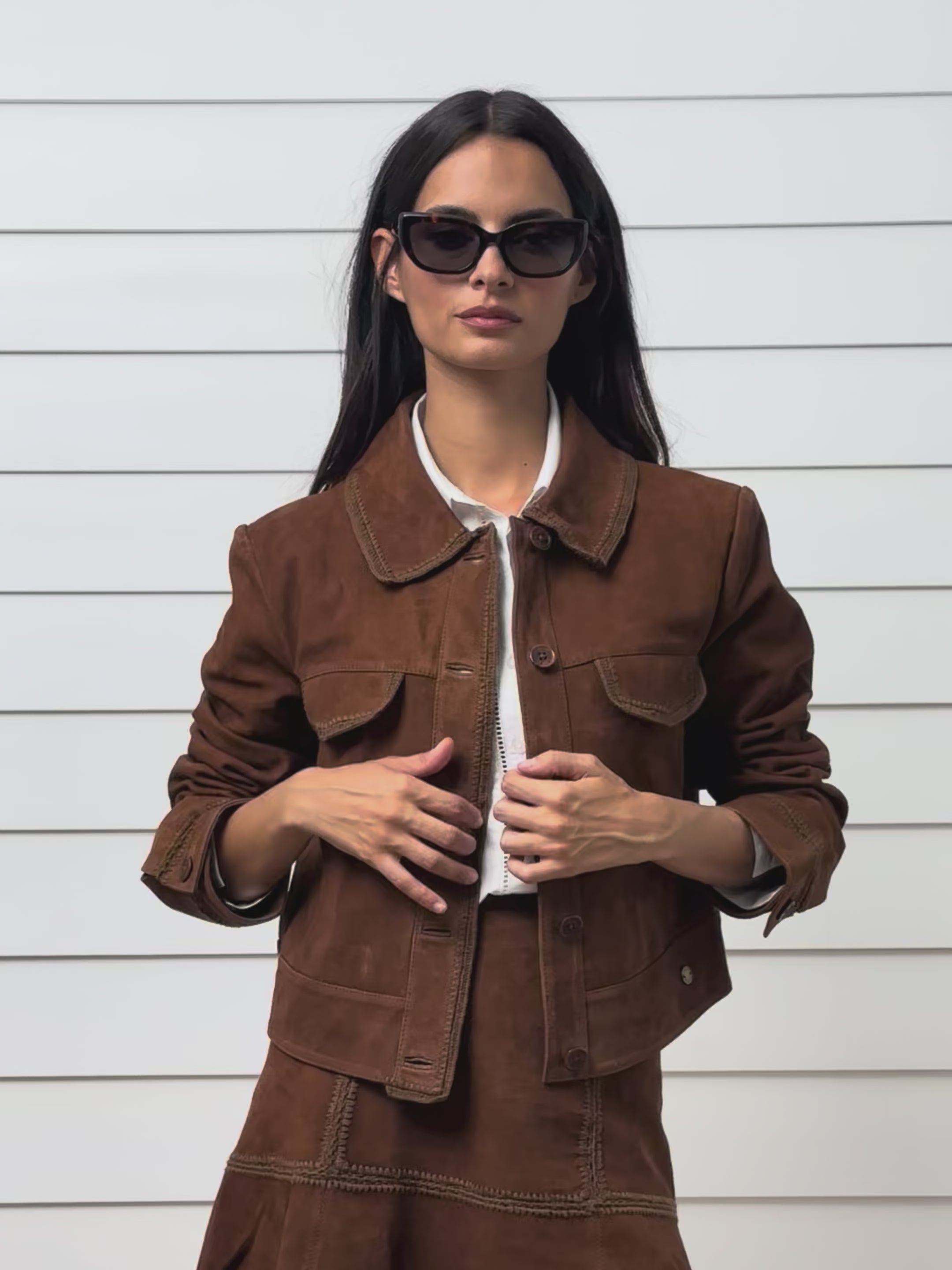 Casaco de camurça castanho