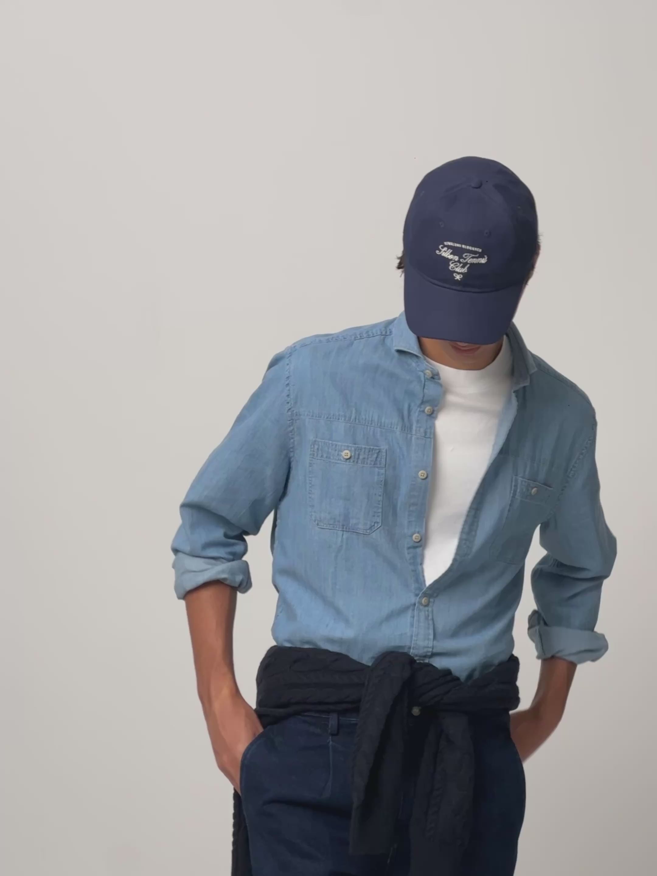 Camisa desportiva de ganga com bolsos azul claro