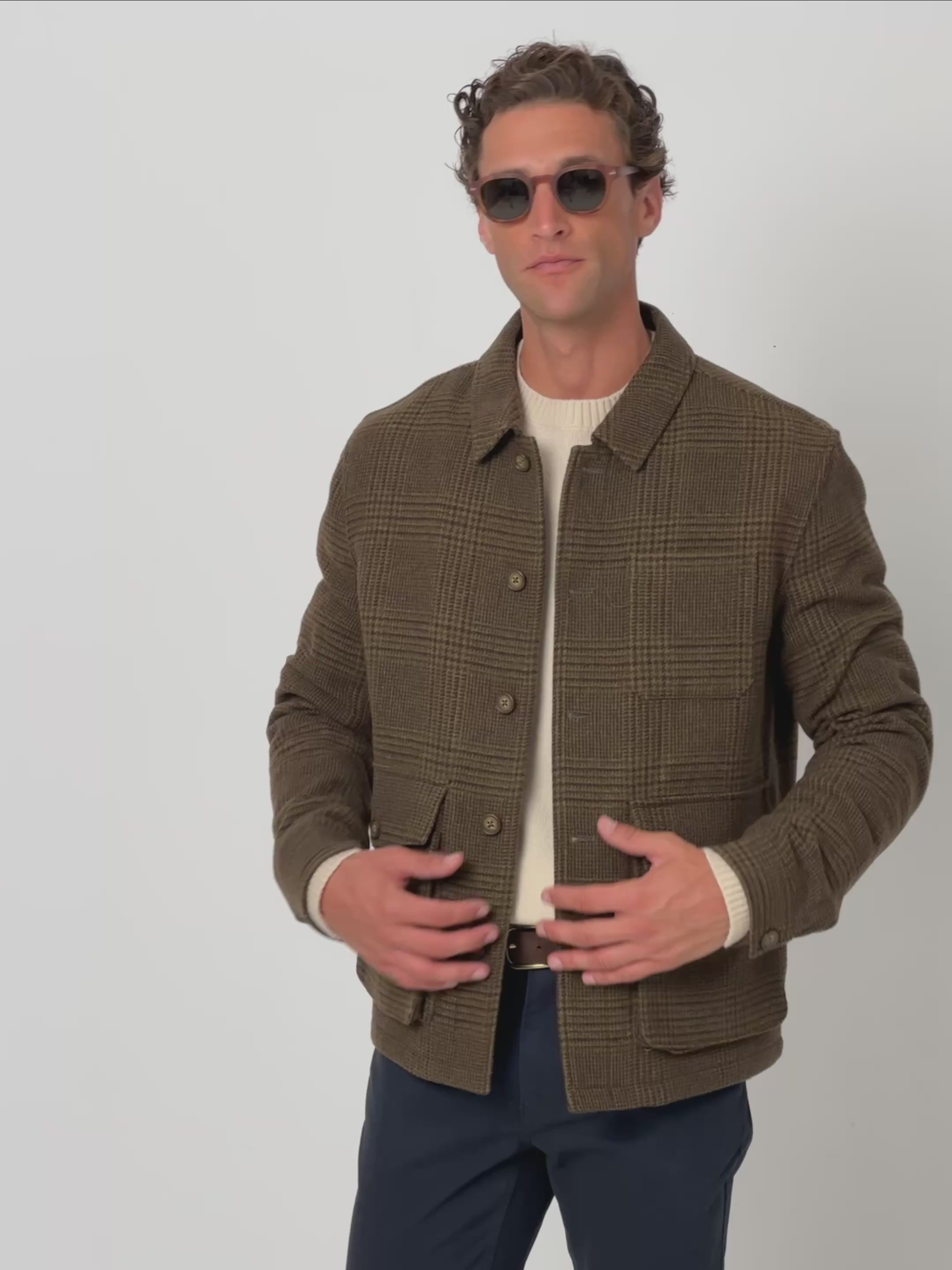 Esta elegante chaqueta destaca pelo seu estampado Príncipe de Gales em tons de castanho, um clássico intemporal que aporta sofisticação e estilo a qualquer conjunto. Está confeccionada numa mistura de lã de alta qualidad
