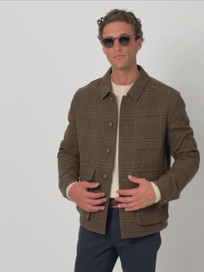 Esta elegante chaqueta destaca pelo seu estampado Príncipe de Gales em tons de castanho, um clássico intemporal que aporta sofisticação e estilo a qualq .